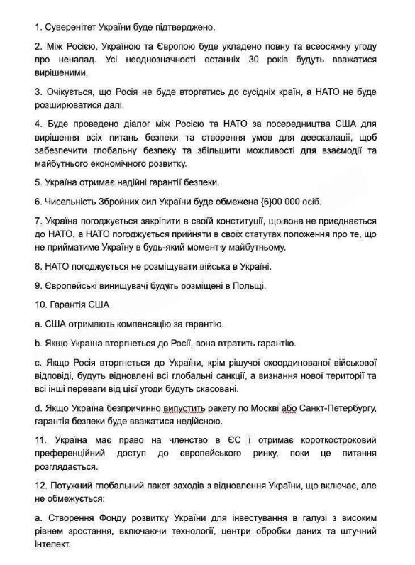 2. Zwischen Russland, der Ukraine und Europa wird ein umfassendes Nichtangriffsabkommen geschlossen. Alle Unklarheiten der vergangenen 30 Jahre gelten als beigelegt.