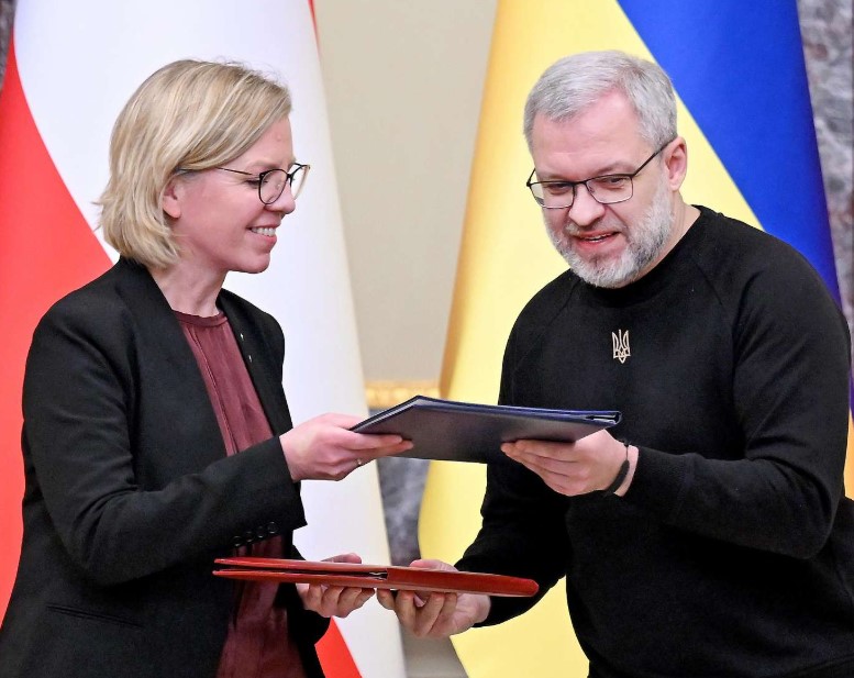 Der Vizedirektor des ukrainischen Energiekonzerns Energoatom übernahm die Schenkungsbestätigung von Leonore Gewessler, wie das Fotografen dokumentierten – es war Herman Walerijowytsch Haluschtschenko, der 2025 zum Justizminister der Ukraine aufstieg und jetzt vor drei Tagen von Selenskyj suspendiert werden musste – so lange die Ermittlungen gegen ihn laufen.